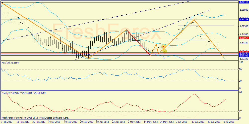 Дополнительный сценарий - вариант с пробоем 1.3115. Потеря этой поддержки опрокинет пару в 28-ю фигуру, к 1.2809.