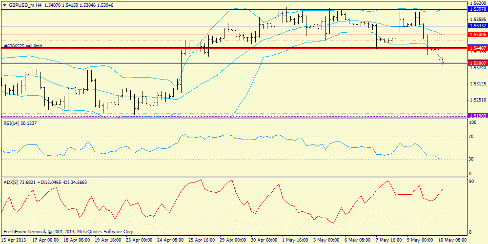 Н4: пробит нижний конверт и теперь в лучшем случае коррекция может достигнуть сопротивления в районе нижней полосы (1.5450), после чего падение продолжится.