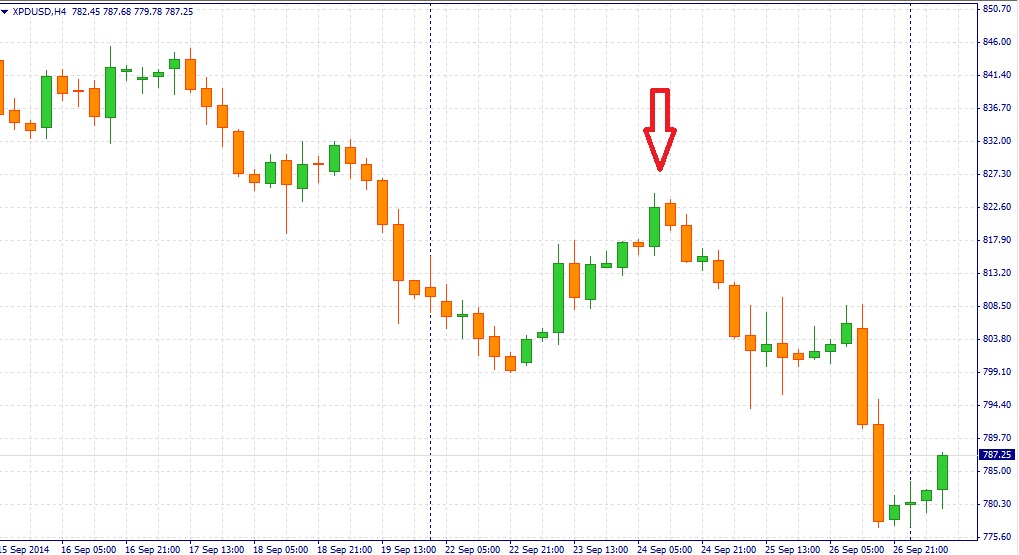 Список неудачников прошедшей недели возглавил палладий (XPD/USD), который по итогам недели похудел на -3,82%. Релиз по заказам на товары долгосрочного пользования в Соединенных Штатах в августе показал снижение на 18,2%, что на 0,5% хуже ожиданий участников рынка. Именно эта группа товаров в большей степени формирует спрос на металлы платиновой группы. В этой связи XPD/USD продолжил нисходящую тенденцию. Немного отстали от “лидера” кросс-курсы новозеландского доллара: NZD/USD -3,47% и NZD/JPY -3,29% . О причинах снижения национальной валюты Новой Зеландии к своим основным конкурентам мы уже рассказали, стоит так же отметить, что пара NZD/USD настроена обновить минимум 2013 года. Советуем не упускать эту отличную возможность и заработать на распродажах новозеландца.