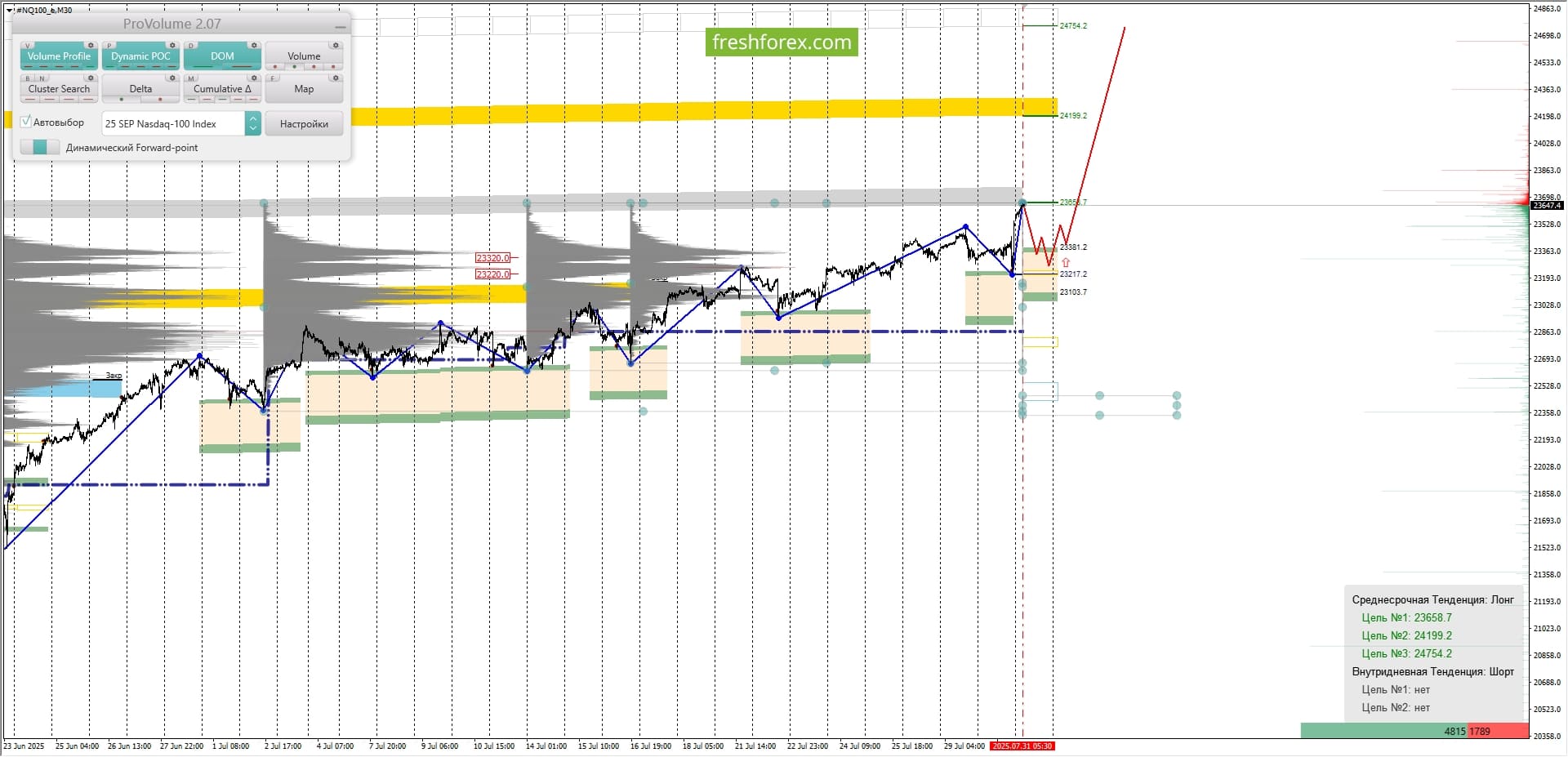 • Внутридневные цели: обновление максимумов от 31.07.2025–23658.7.