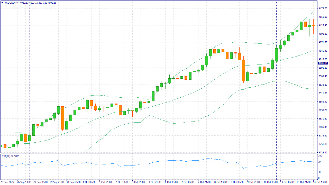 Золото начинает неделю возле исторических уровней: спот колеблется примерно у $4 080 за унцию. Поддержку дают ожидания снижения ставки ФРС на заседании 28–29 октября и заметное ослабление доходностей казначейских бумаг США в преддверии решения. Поток новостей о правительственной «паузе» в США и задержках статистики усиливает роль золота как защитного актива, а сентябрьская инфляция вышла чуть ниже ожиданий, что укрепило ставку на смягчение политики. Кроме того, продолжаются рекордные притоки в золотые фонды после всплеска цен в октябре.