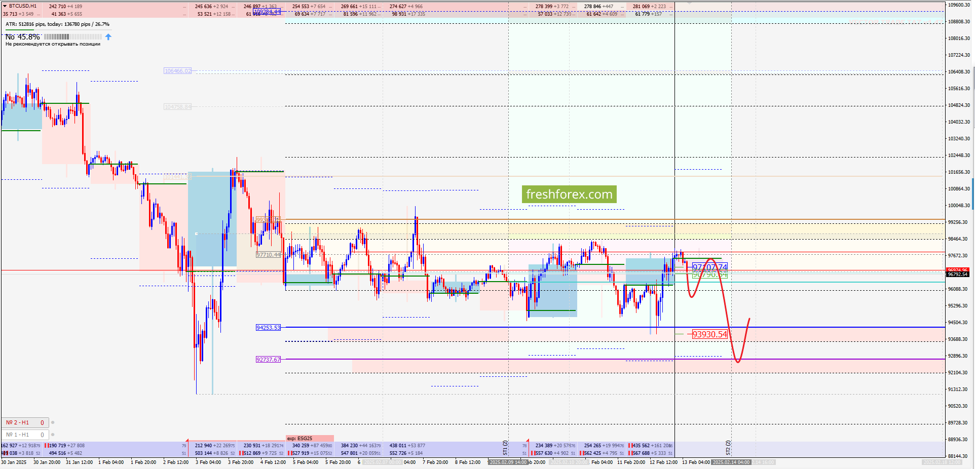 Торговая рекомендация: BTCUSD: SELL 97107, SL 98373, ТР 93035