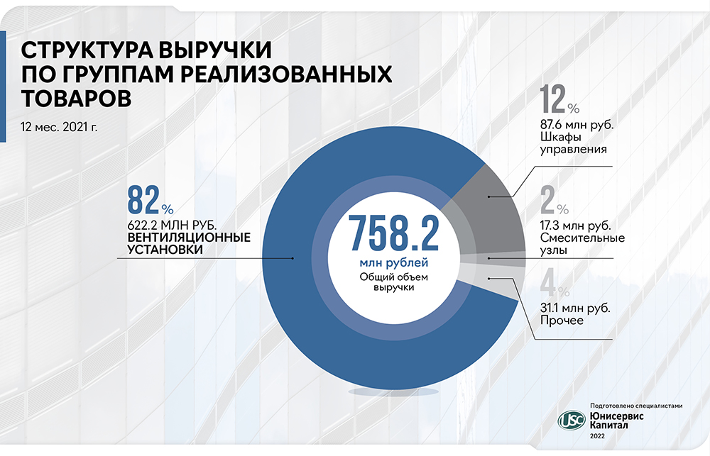По итогам работы 2021 года компания показала положительную динамику в своей финансово-хозяйственной деятельности: выручка составила 758,2 млн руб., что выше аналогичного периода прошлого года на 28,6 %.