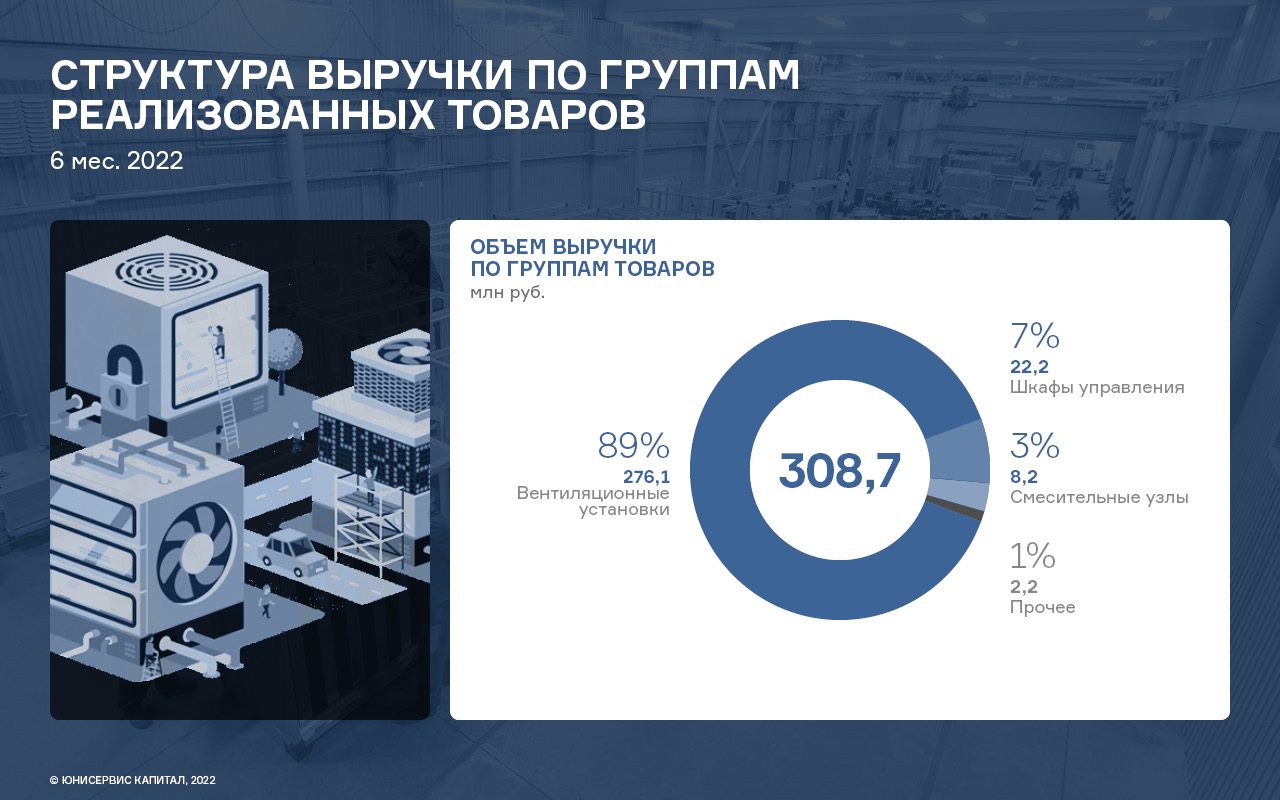 Валовая рентабельность исторически находится на высоком уровне. Это объясняется тем, что компания реализует индивидуальные высокомаржинальные проекты с использованием технологий, разработанных в собственной «Лаборатории энергоэффективности» компании. В связи с увеличением объемов проектирования в первом полугодии 2022 г. эмитент провел усиление инженерного состава предприятия.
