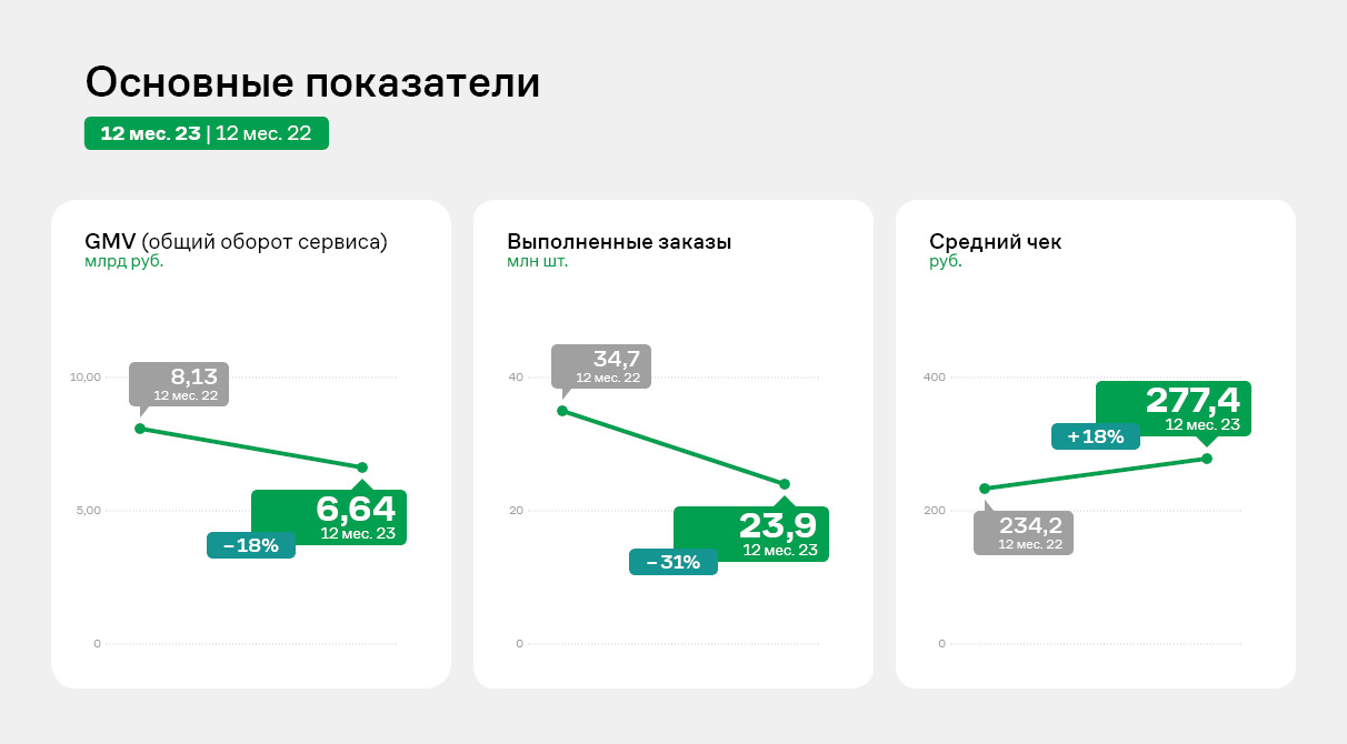 С учетом проведенной оптимизации партнерской базы GMV 1 квартала 2024 года показал падение к 4 кварталу 2023 года.