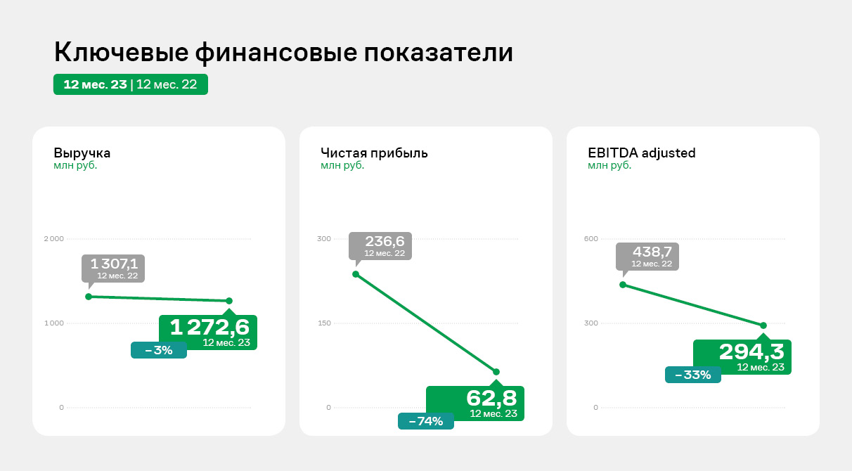 Несмотря на то, что в отчетном периоде зафиксировано снижение объемов выручки, все остальные финансовые показатели по 1 кварталу 2024 года (операционная и чистая прибыль, EBITDA, уровень долговой нагрузки и другие) демонстрируют позитивную динамику.