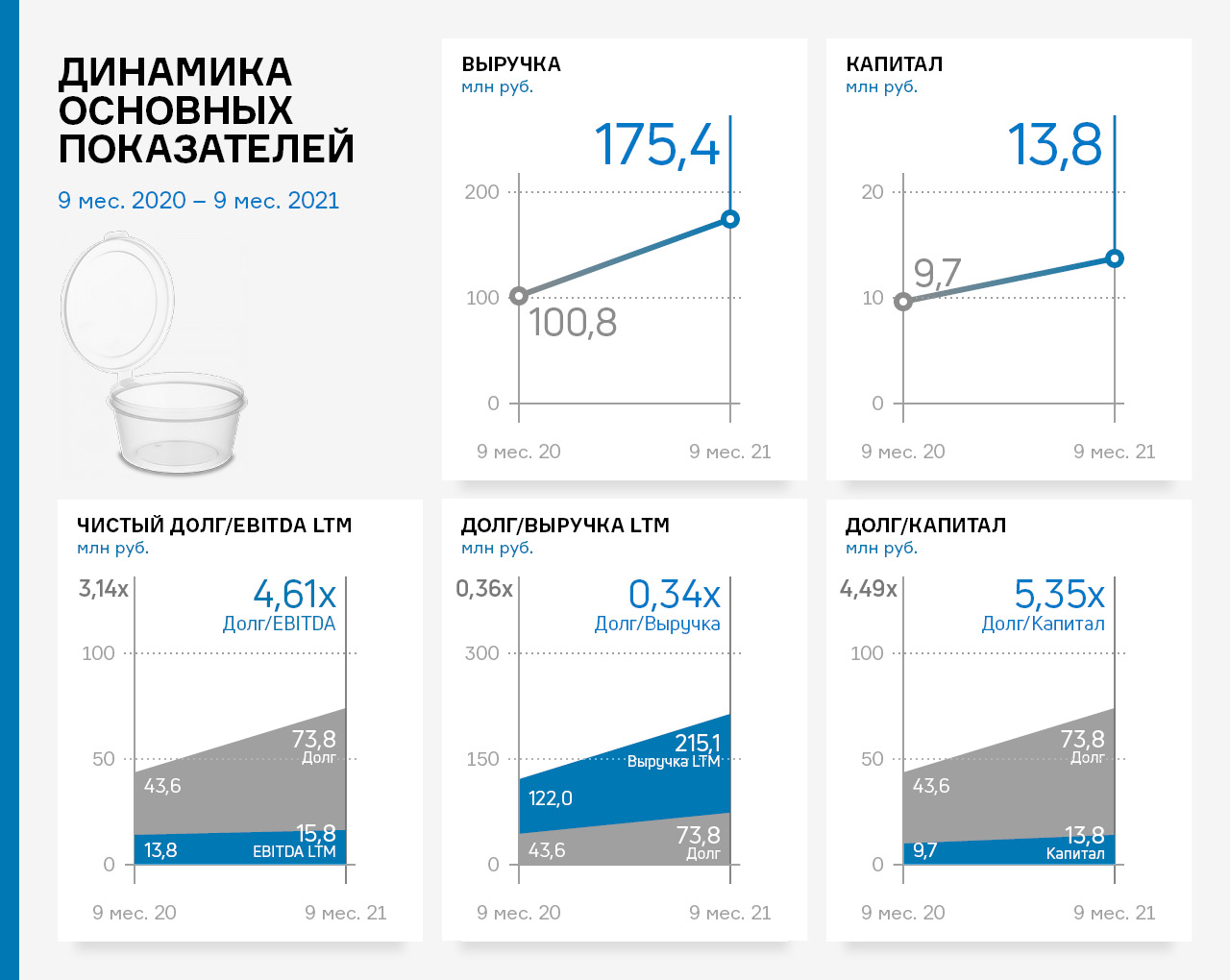 Операционные показатели показали аналогичную динамику: Так, EBITDA LTM (Показатель EBITDA за последние 12 месяцев) выросла на 27% 9м/9м и составила 1,4 млрд руб.