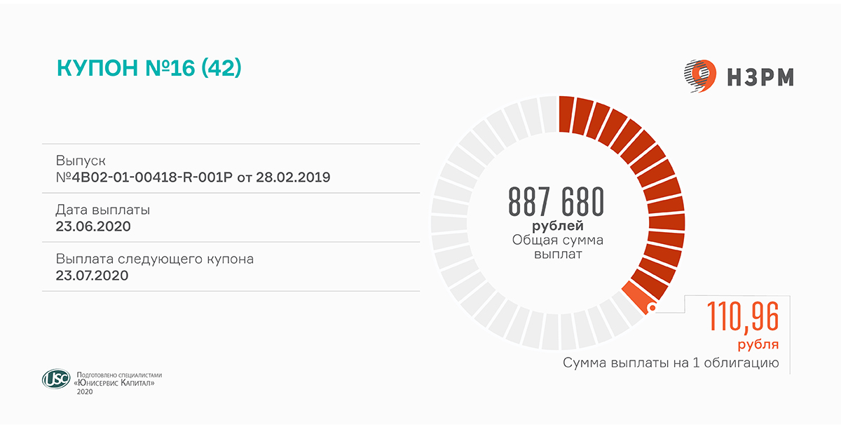 Напомним, что выпуск облигаций «НЗРМ» серии БО-П01 (ISIN код: RU000A1004Z9) объемом 80 млн рублей был размещен в марте 2019 г. Номинал ценной бумаги — 10 тыс. рублей. Срок обращения — 3,5 года. По условиям эмиссии, досрочного погашения бумаг эмитентом не предусмотрено.