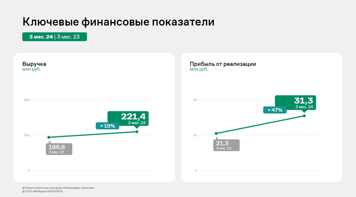 «Фабрика ФАВОРИТ» отмечает положительную динамику в рамках расширения клиентского портфеля. За первые месяцы 2024 года эмитент заключил контракты с покупателями из Якутии, Канска и Санкт-Петербурга. В планах — наращивание позиций на Дальнем Востоке.