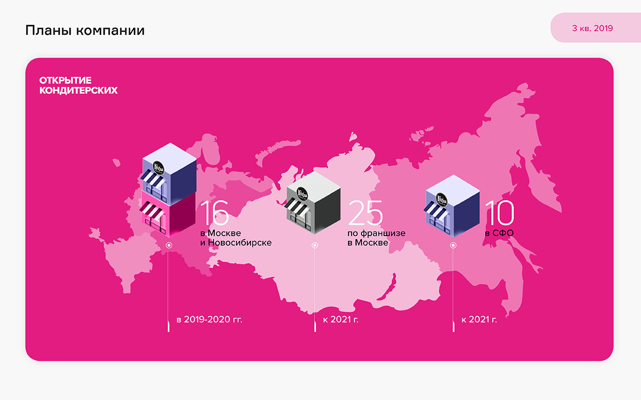 В 2019 году компания открыла новое кафе и увеличила количество торговых павильонов при росте валовой рентабельности до 55,9% за счет развития собственного производства.