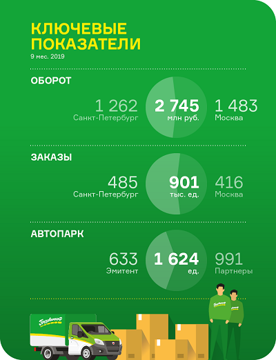 Компании, работающие под брендом «ГрузовичкоФ», сформировали по итогам 9 месяцев текущего года оборот 2,74 млрд рублей. Средний прирост показателя в месяц составляет 20-25%. Объем заказов вырос на 14% относительно января-сентября 2018 г. и составил 901 тыс. ед. О финансовом состоянии сервиса в целом и эмитента биржевых облигаций — ООО «ГрузовичкоФ-Центр» в частности читайте ниже.