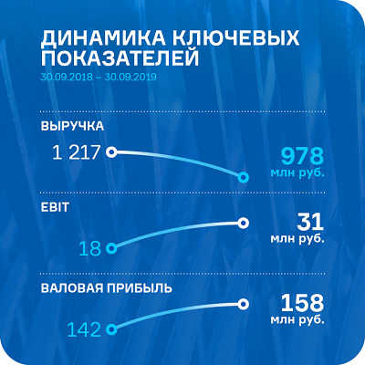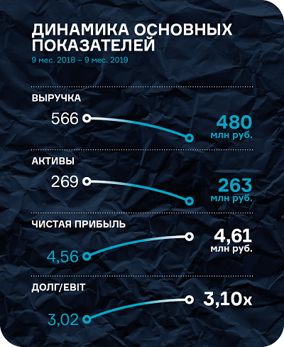 Выручка эмитента составила 265,3 млн рублей, что на 15% больше относительно января-сентября 2018 г. Чистая прибыль увеличилась в два раза и составила 4 млн рублей.