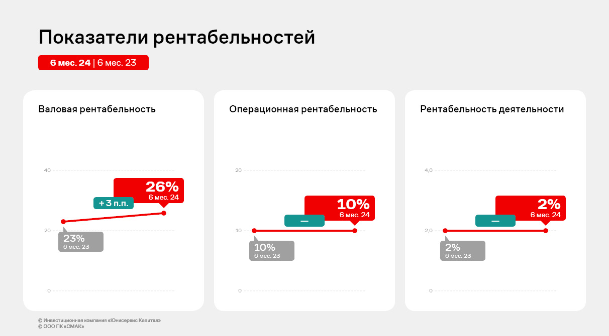 При этом ПК «СМАК» удалось сохранить все показатели рентабельности на уровне аналогичного периода прошлого года.