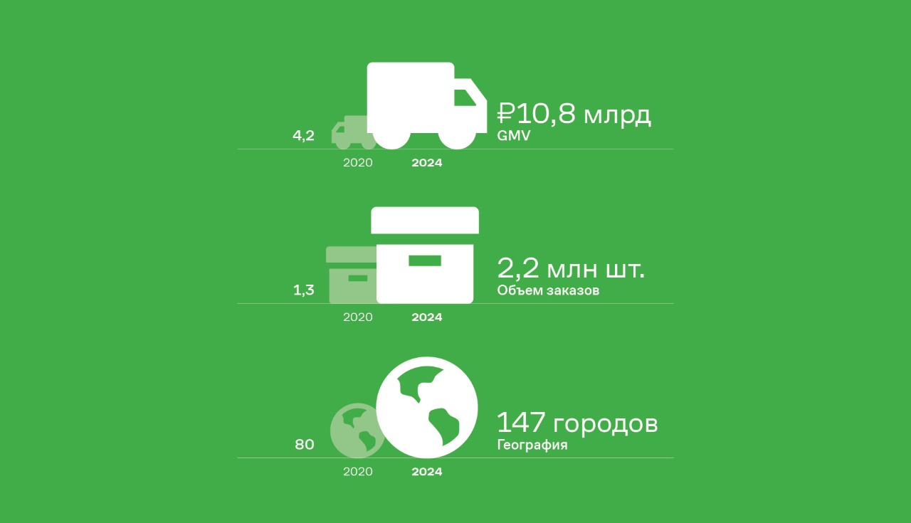 В 2024 году совокупный GMV составил 10,8 млрд руб., что на 10% выше показателей прошлого года. Доля бренда «Грузовичкоф» в общем обороте составила 67%.