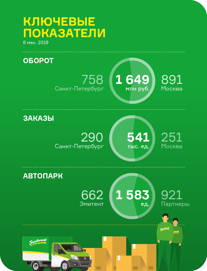 Рост оборота обусловлен увеличением числа заказов на 14%. За 6 мес. 2019 г. компании, работающие под брендом «ГрузовичкоФ», выполнили 541 тыс. заказов.