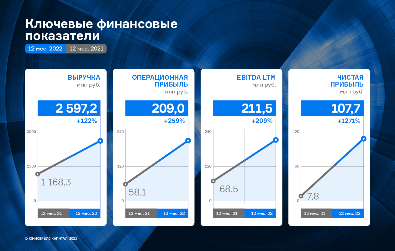 2022 год стал для АО «Ламбумиз» окном возможностей. Уход крупных зарубежных производителей упаковки позволил компании существенно нарастить клиентскую базу. На этом фоне ключевые финансовые показатели — выручка, операционная и чистая прибыль, EBITDA LTM — увеличились более чем на 100% относительно АППГ.