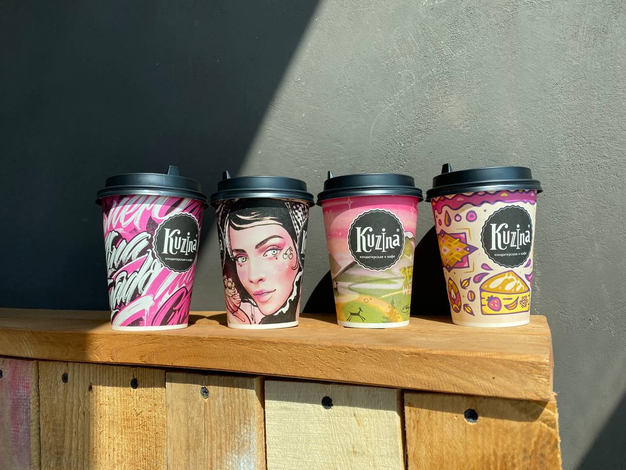 Дизайн стаканов к лету специально для «Кузины» оформили известные сибирские художники, работающие в направлении стрит-арт. В рисунок интегрированы QR-коды с маршрутами по Новосибирску, разработанные и предоставленные 2Гис специально для проекта.