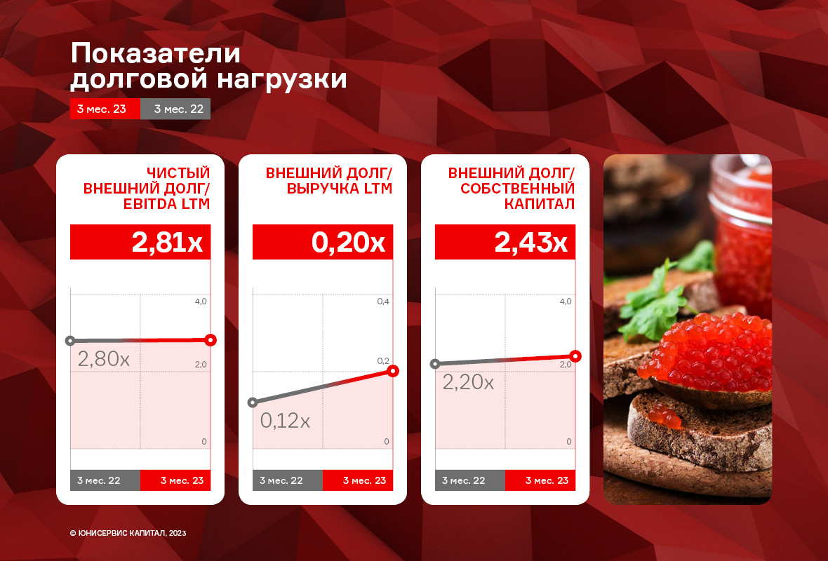 Благодаря обильному вылову лососевых рыб и снижению цен на икру, эмитент расширяет клиентскую базу и заключает новые контракты.