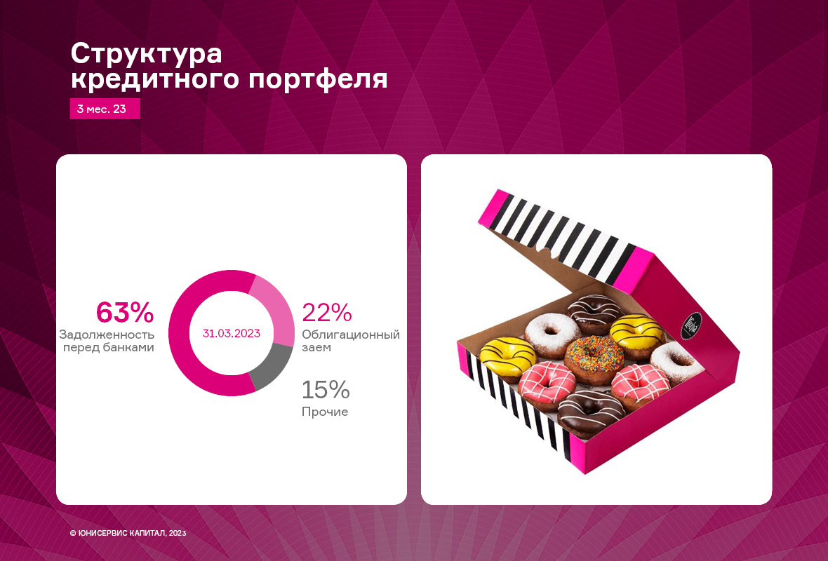 Эмитент ООО «Кузина» отметил, что ему удалось оптимизировать расходную часть, что позволило нарастить значения чистой прибыли и EBITDA LTM на 47,2% и 102,4% к АППГ. При этом результат по выручке уступил показателю 1 кв. 2022 г. Подробнее про итоги 3 мес. 2023 г. пишем в аналитическом обзоре.