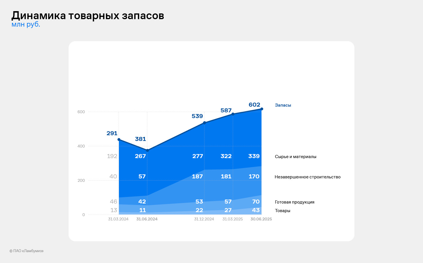«2024 год для нашей команды ознаменовался качественным ростом по всем направлениям бизнеса: новые достижения на производстве и получение важного опыта в изготовлении асептической упаковки, публикация первой отчетности МСФО и совершенствование системы корпоративного управления, успешное проведение IPO и, конечно, старт реализации инвестиционного проекта, промежуточными результатами которого мы регулярно делимся с нашими инвесторами. В 2025 году мы продолжим поступательно выполнять нашу стратегию и к ноябрю планируем получить разрешение на строительство 1 очереди, чтобы уже в 2026 году начать выпускать асептическую упаковку на новых площадях», – отмечает генеральный директор ПАО «Ламбумиз» Александр Абалаков.