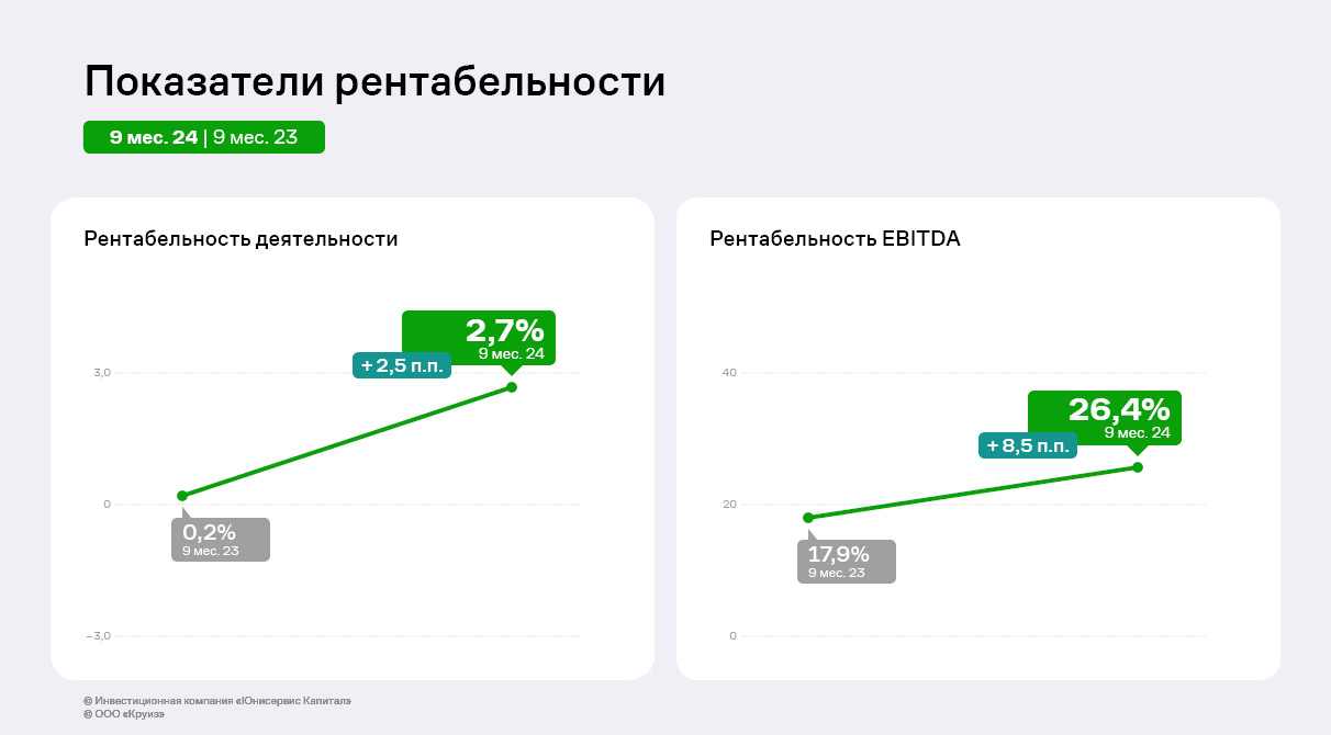 Кроме того, в 3 квартале компания приняла меры по значительному сокращению постоянных расходов. Были оптимизированы затраты на обслуживание техники, аренды офисов, пересмотрены административные издержки и проведена автоматизация ключевых процессов, что позволило сократить численность штата без ущерба для операционной эффективности.