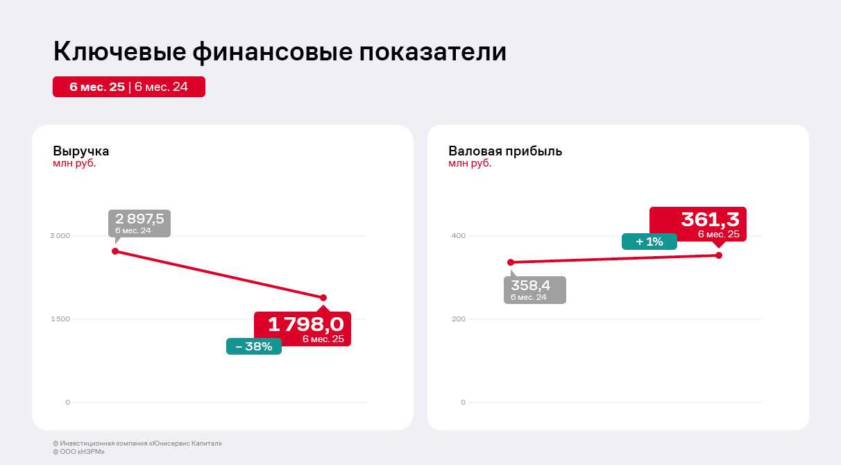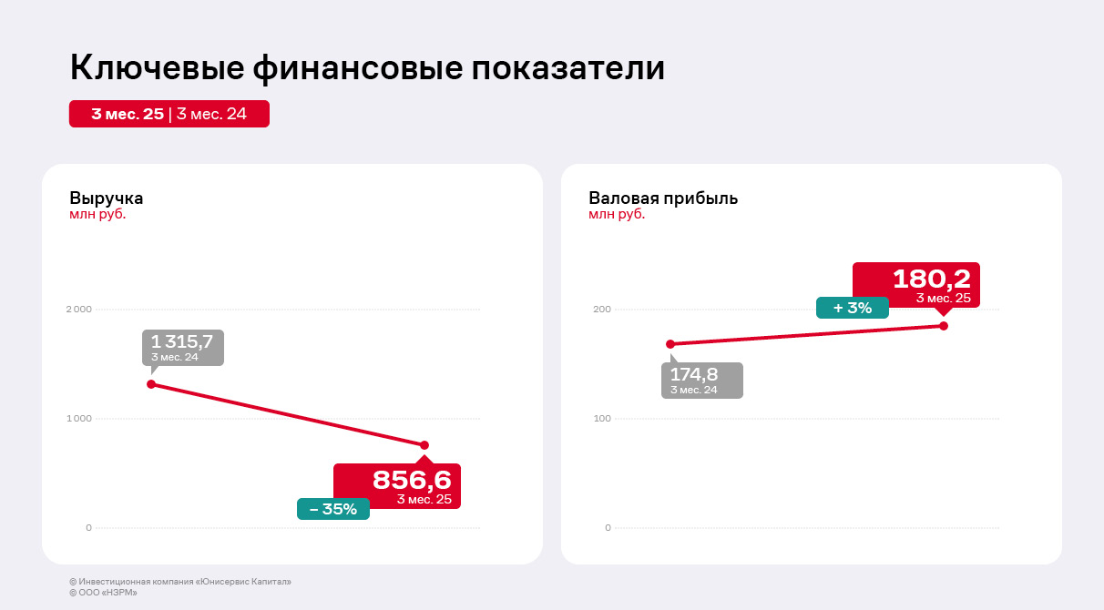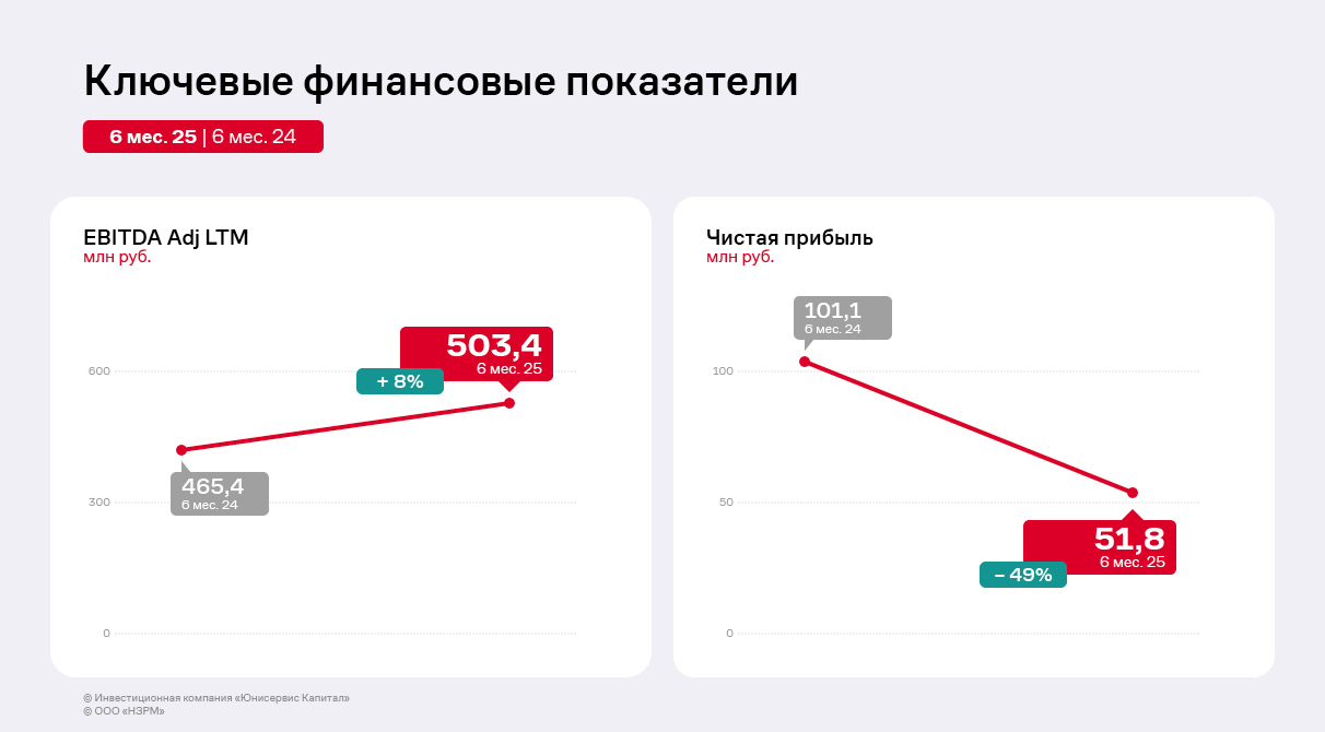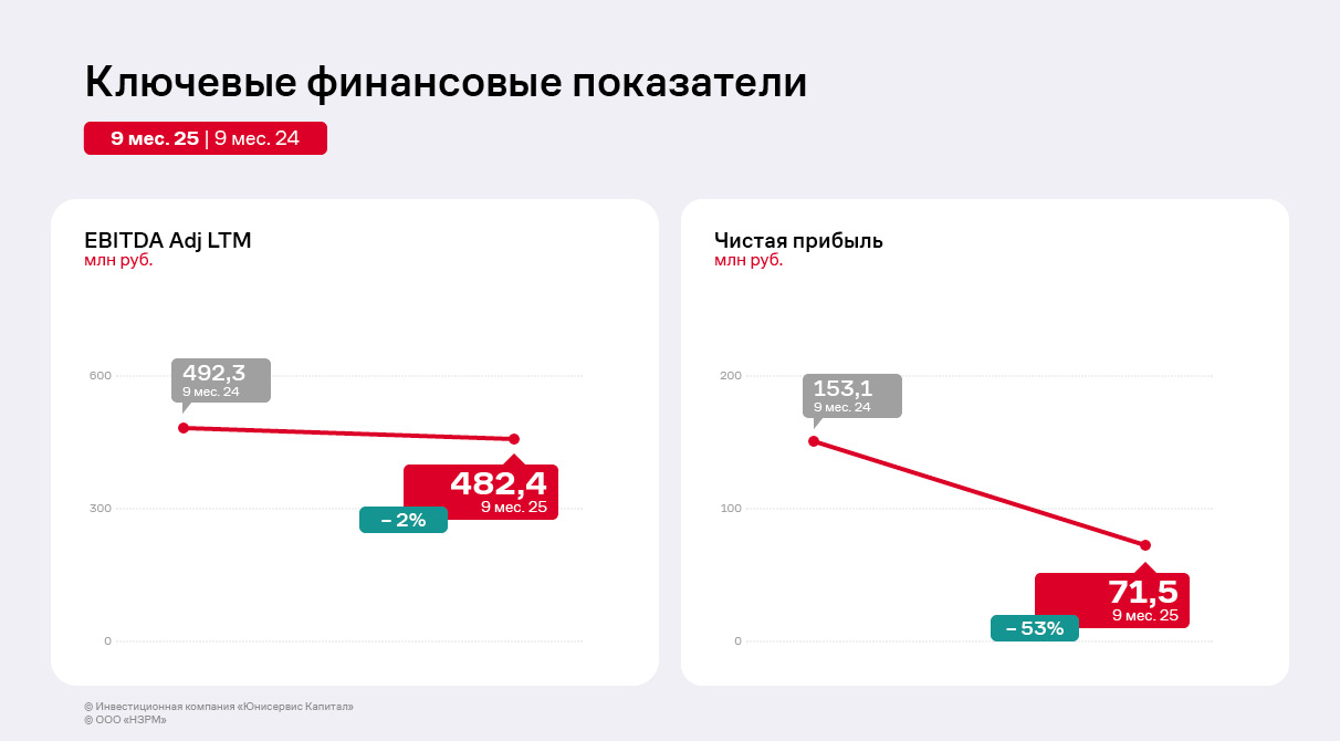 В 2024 году «НЗРМ» приступил к выплате частичных досрочных погашений номинальной стоимости облигаций выпуска НЗРМ-БО-01, размещённого в 2022 году. В 2024 г. сумма амортизационных выплат составила 24 млн руб., а за 9 месяцев 2025 г. — 48 млн руб. Напомним, что средства выпуска были, в том числе, использованы для запуска второго производственного цеха. Также для финансирования этого проекта компания привлекала кредит от Фонда развития промышленности.