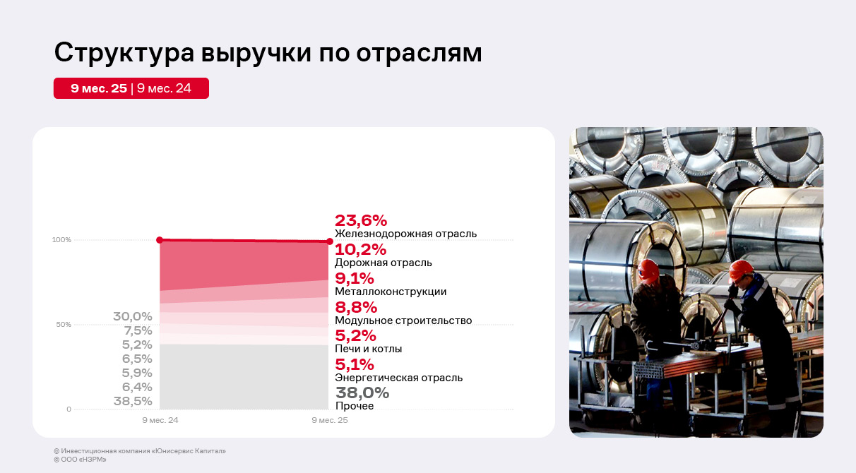 Несмотря на снижение спроса со стороны вагоностроительных предприятий, компания не фиксирует уменьшения объёмов производства и финансовых показателей. Диверсифицированный клиентский портфель и адаптивные производственные процессы позволяют НЗРМ сохранять стабильность.