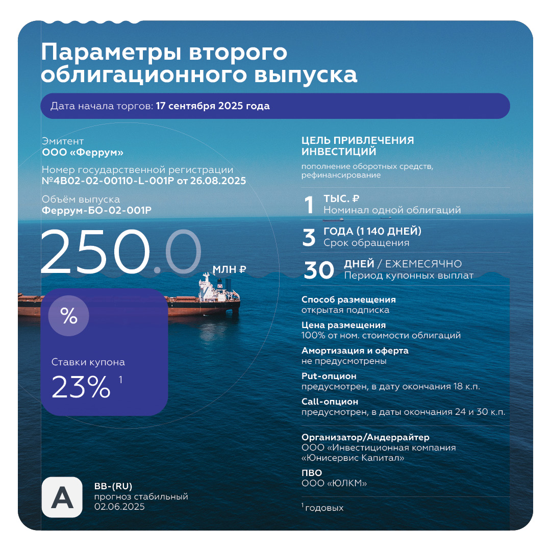 15 сентября 2025 года на сервисе Boomerang стартовал сбор предварительных уведомлений по выпуску Феррум-БО-02-001Р для всех желающих поучаствовать в первичном размещении.