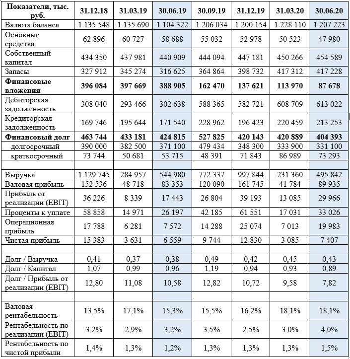 По итогам 6 месяцев 2020 г. эмитент отразил выручку на уровне 1,14 млрд рублей при чистой прибыли более 30 млн рублей. Общий капитал к 30 июня достиг 145,5 млн рублей.