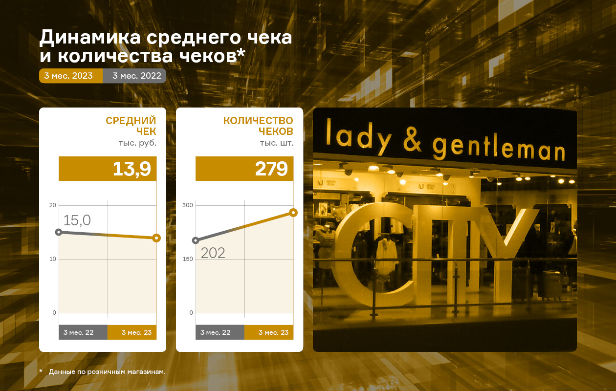 Количество чеков также показало существенный рост (на 37,8%) за счет проведения распродаж в 1-м кв. 2023 г.