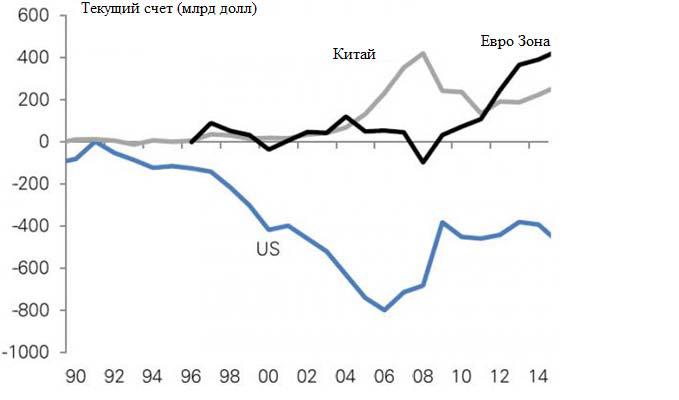 Но совершенно очевидные причины дисбалансов в Еврозоне – это высокий уровень безработицы вкупе с рекордным профицитом текущего счета. И один, и другой фактор вызваны преобладанием сбережений над тратами и инвестициями в целом. Профицит текущего счета Еврозоны действительно огромен - около 400 миллиардов долларов в год, что даже больше, чем в Китае в 2000-х.