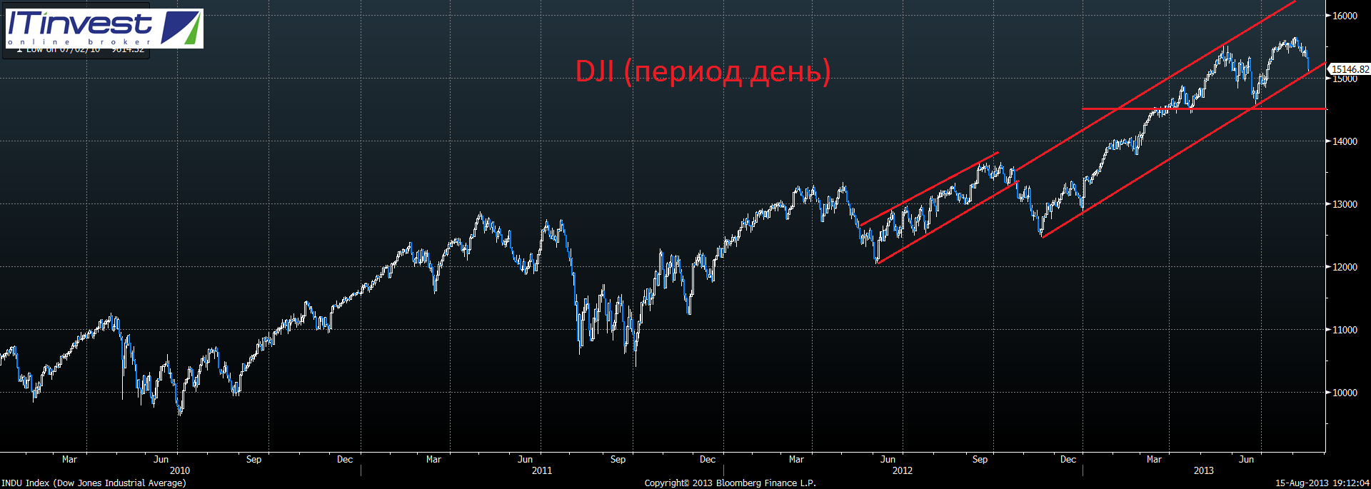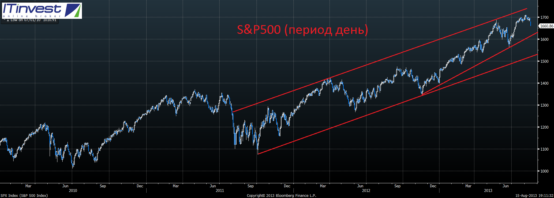 Напоминаем, что чуть менее двух недель осталось до 2-го "Финансового раунда", который пройдёт 16 ноября в Ресторане «Максим Бар» . Просим всех желающих заранее регистрироваться на мероприятие по следующей ссылке www.itinvest.ru/fin-round/  Продолжает сохраняться умеренный оптимизм на мировых фондовых площадках, несмотря на довольно высокие значения по ведущим мировым индексам. Навес ликвидности по-прежнему гасит все негативные новости, а существенного драйвера для коррекции пока на рынки не поступает. Безусловно, потенциал роста с текущих уровней уже весьма ограничен, но сломать подобный бычий тренд на американских и европейских площадках не так уж просто. Пока мы закладываемся, что ноябрь пройдёт практически в нейтральном ключе, а вот в декабре, скорее всего, мы увидим первые существенные продажи за океаном и начало коррекции, которая наберёт уже обороты в первом и втором квартале следующего года.  С технической точки зрения российский индекс ММВБ продолжает находиться в восходящем тренде. Основной диапазон поддержки находится в коридоре 1520-1500 пунктов. Сильным уровнем сопротивления будет в ближайшее время выступать диапазон 1540-1550 пунктов. В случае закрытия недели за пределами диапазона поддержки или сопротивления, стоит готовиться к ускорению движения цены в сторону пробоя ещё на 3-4%. Пока что, мы уже две недели наблюдаем консолидацию в широком диапазоне 1500-1540 пунктов, в котором пока не наблюдается существенных распродаж, а значит выход вверх, в рамках восходящего тренда, пока ещё возможен. Не стоит забывать, что отметка 1550 по индексу ММВБ уже как три года является сильным уровнем сопротивления, от которого много раз мы видели разворот российского рынка и существенную коррекцию. Пока мы придерживаемся взгляда, что и в текущем, 2013 году, данная отметка так и устоит по итогам последних двух месяцев.  Фьючерс на индекс РТС последние несколько дней показывал более слабую динамику, чем индекс ММВБ, за счёт ослабления курса рубля. На данный момент мы видим, что образовался новый нисходящий канал с важной поддержкой на отметке 146000 пунктов и сопротивлением на отметке 148000 пунктов. В случае пробоя отметки 149000 и закрытия дня выше отметки 150000 пунктов, стоит временно забыть про короткие позиции и готовиться к росту до отметки 152000. В случае пробоя отметки 152000 мы возможно увидим существенный и быстрый рост до отметки 160000 пунктов. Пока на фондовых рынках движения последних дней и недель не столь впечатляют, на валютном рынке, наоборот идут хорошие движения. После прошедшего заседания ФРС, а также негативных данных по инфляции и безработице в Еврозоне, мы увидели существенную коррекцию в основной валютной паре евро-доллар, более чем на три фигуры за три дня. Индекс потребительских цен в 17 странах еврозоны снизился с 1,1% до 0,7% в октябре – это самое низкое значения в пост-кризисный период. Особенно серьезной ситуация выглядит в странах, оказавшихся в долговом кризисе и вынужденных принимать меры по сокращению бюджетных расходов. Например, в Италии дефляция началась еще летом. При этом, ситуация осложняется ещё ростом уровня безработицы до рекордных 12,2% в еврозоне в целом. В сентябре 74 тысячи человек потеряли работу.  На текущий момент цена остановилась вблизи отметки 1.35, которая является средним значением за последние три года. До предстоящего заседа